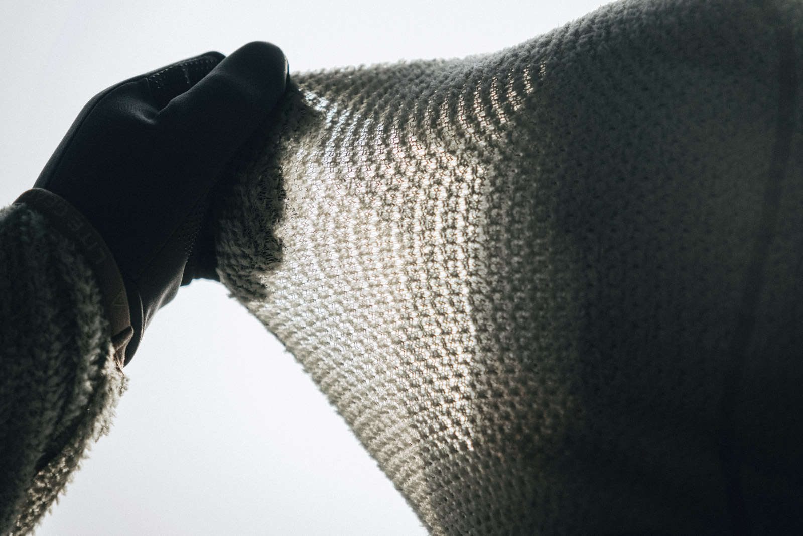 이 기술은 저밀도 니트 구조의 하이 로프트(High Loft) 섬유를 사용해, 무게를 늘리지 않으면서도 효율적인 보온성을 확보하는 데 특화된 원단입니다. 공기를 머금는 구조 덕분에 가볍고 따뜻하며, 동시에 탁월한 통기성, 높은 압축성, 빠른 건조 성능을 구현합니다.