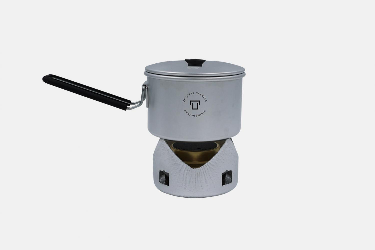 트란지아(Trangia)의 마이크로 오리지널은 알루미늄 소재의 냄비와 알코올 스토브가 세트로 구성된 쿠커입니다. 냄비의 크기는 11.2cm x 8.3cm이며 용량은 500ml입니다. 무게는 111g이고 알코올 스토브와 세트 무게는 282g으로 매우가볍습니다.
